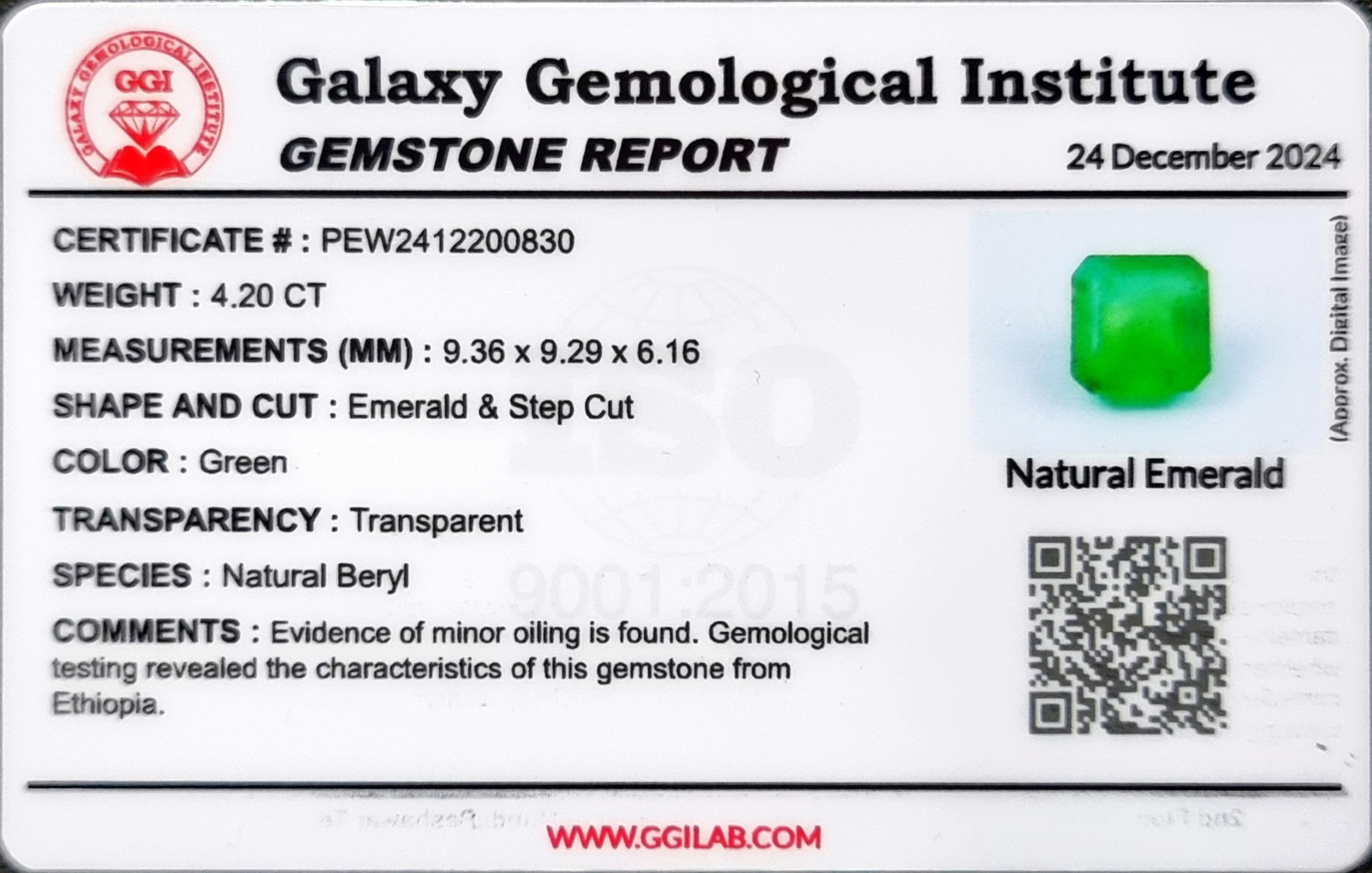 • Certification: Certified by Galaxy Gemological Institute