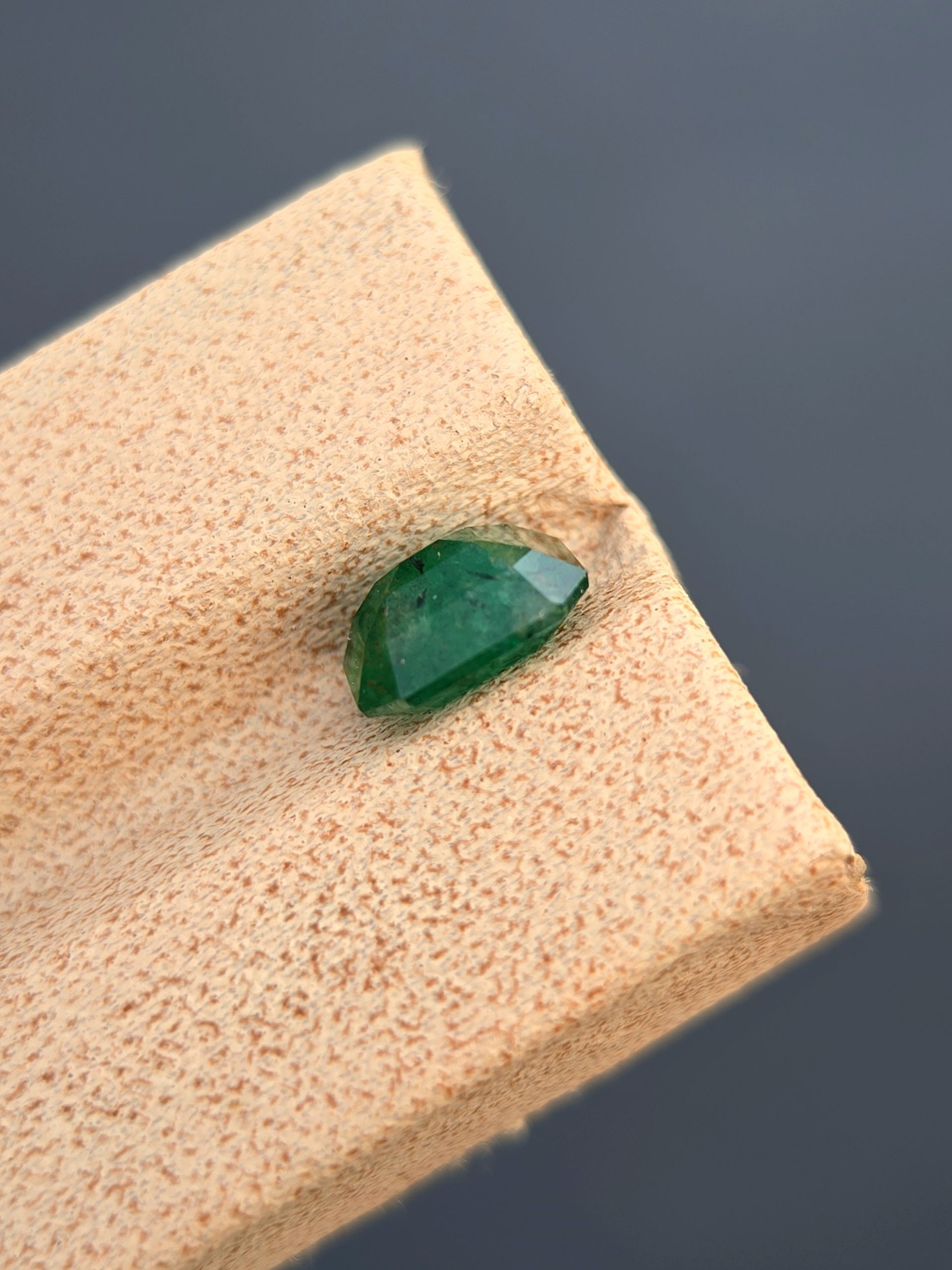 This Natural Emerald from Swat, Pakistan weighs 1.75 ct and is cut in the elegant emerald shape, enhancing its vivid green tone and classic appeal. Measuring 8.10 × 7.04 × 4.17 mm, this gemstone exhibits natural inclusions, a characteristic feature of genuine emeralds. Its semi-transparent quality allows light to interact softly with the stone, giving it a natural charm. Emerald-cut gems are particularly prized for their sophistication and versatility, making this piece a fine choice for rings, pendants, or bespoke jewelry designs. Collectors and enthusiasts often seek Swat emeralds for their authenticity, adding lasting value to any collection.