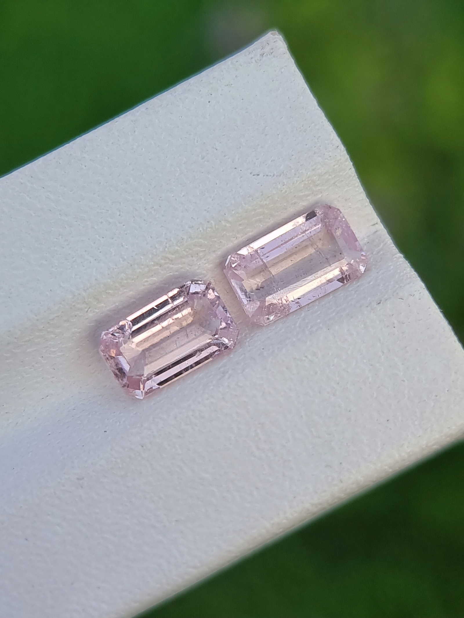 This beautiful pair of Natural Imperial Topaz gemstones, sourced from Katlang, Pakistan, features a combination of two stones with light pink color and emerald cut shapes.